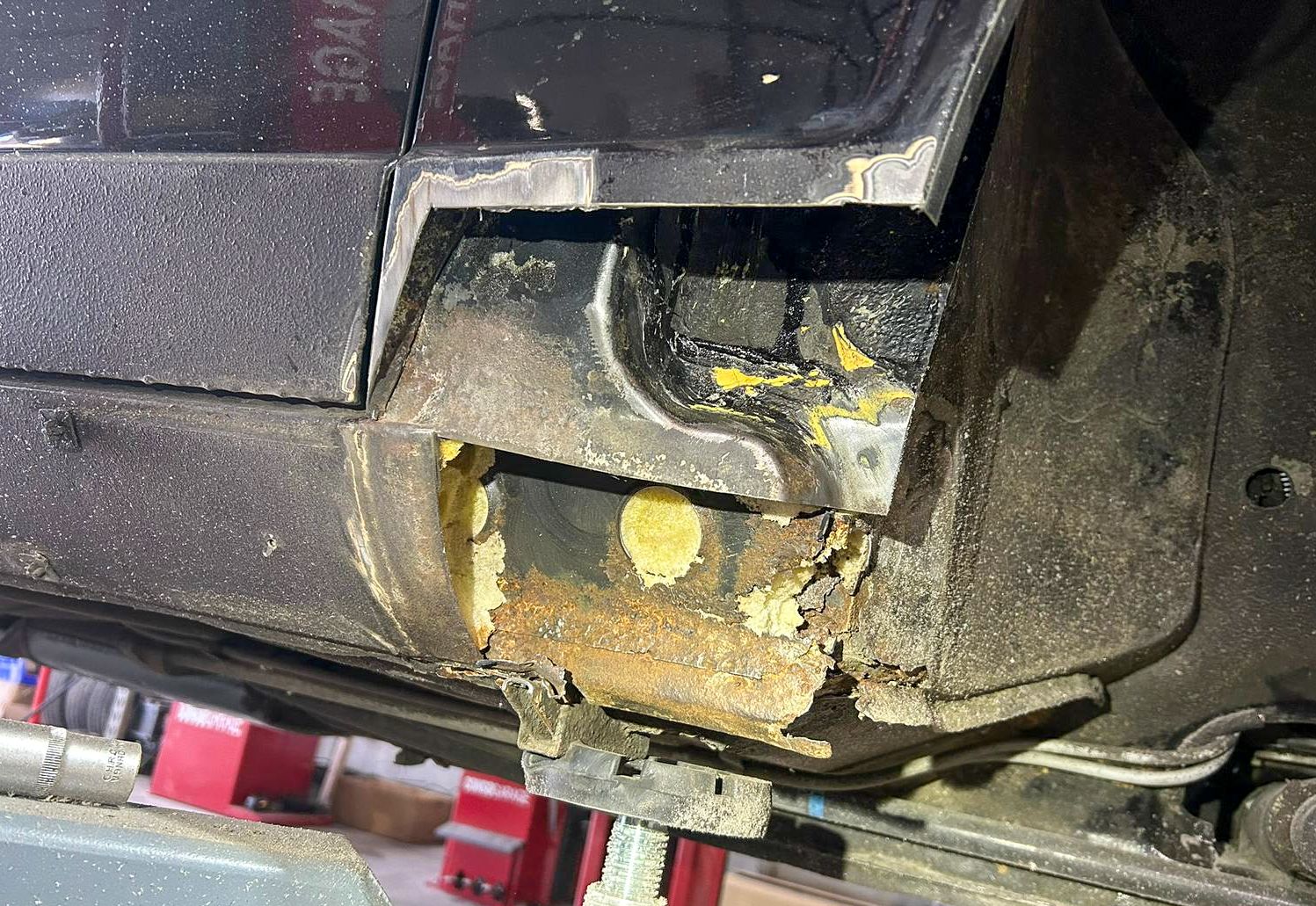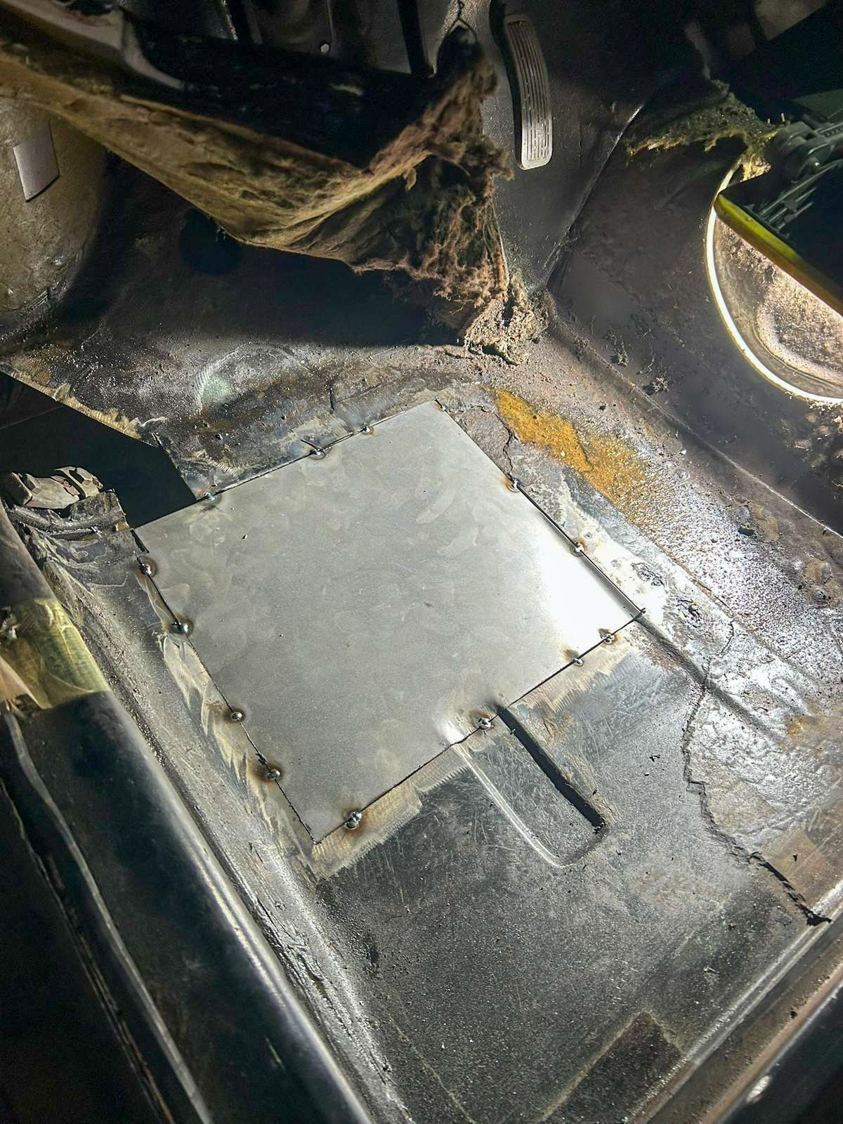 Côté conducteur, il y avait également un trou dans le plancher qu’il a classiquement réparé.