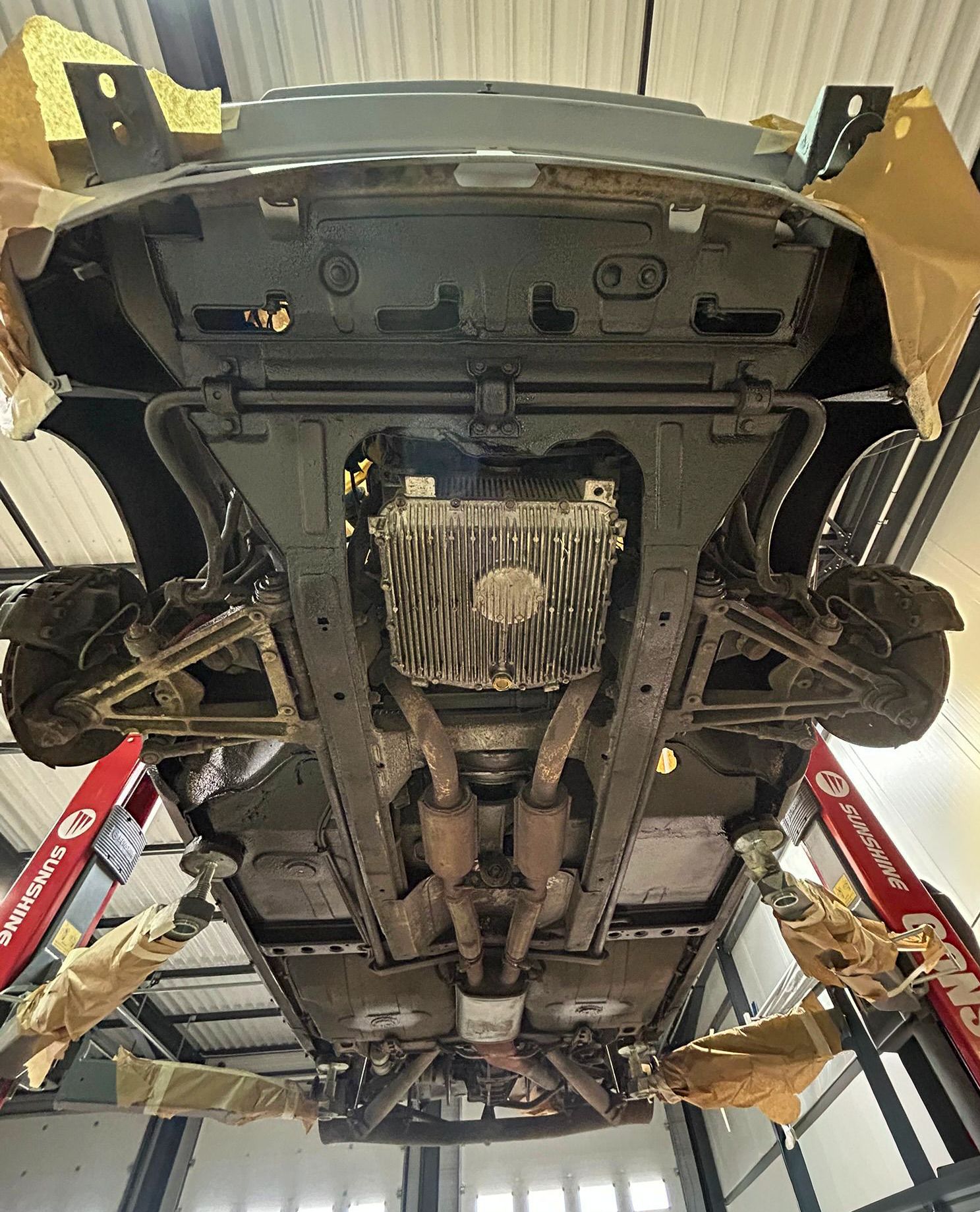 D’autres réparations de tôlerie ont été effectuées et au final, les sousbassements reçoivent un traitement anti-gravillon noir.